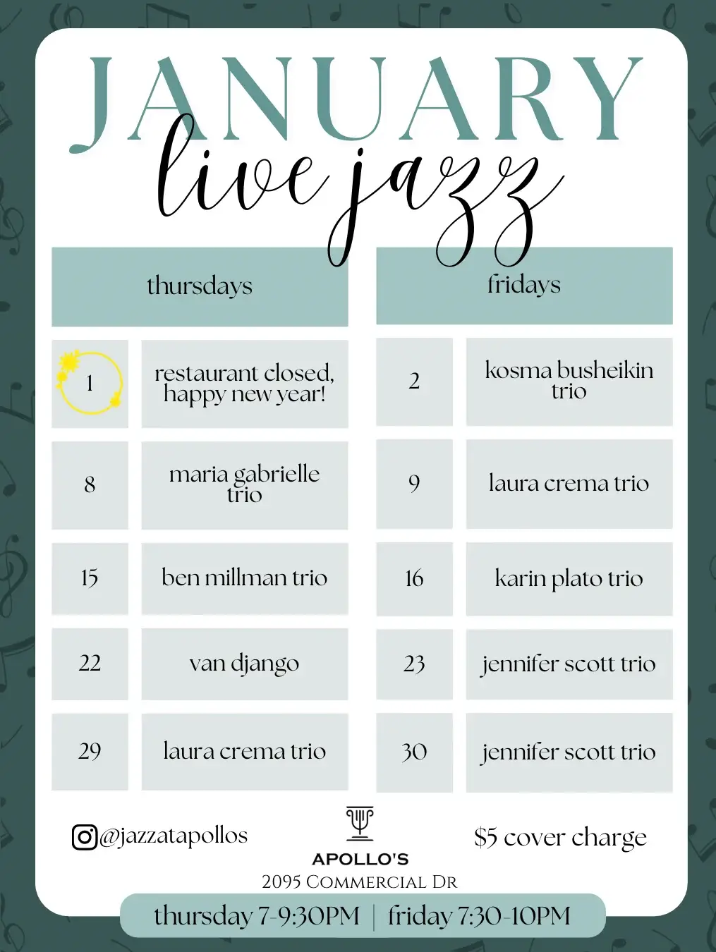 At Apollo's Restaurant, our goals are centered around providing an unparalleled dining experience that delights and inspires our guests.